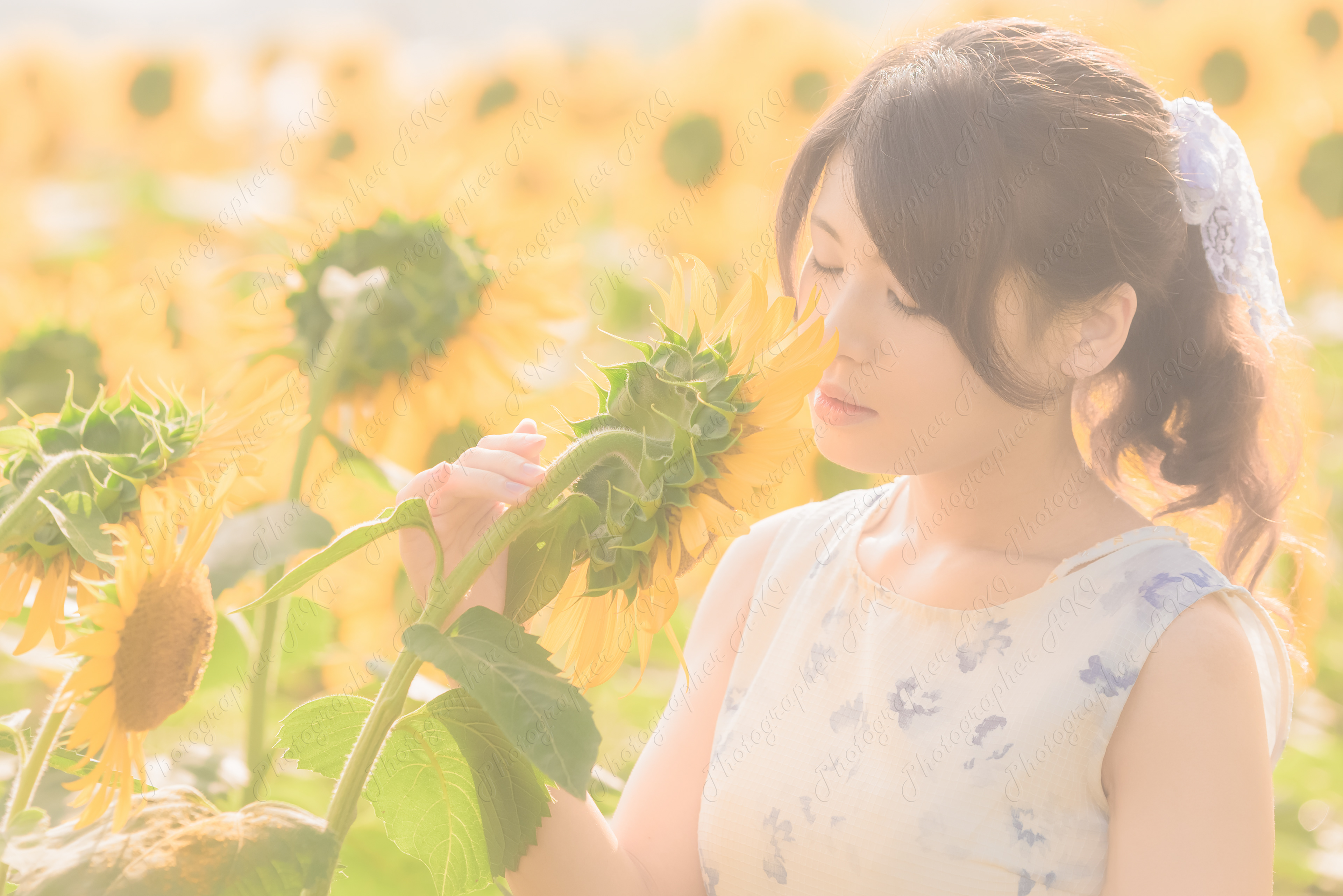 Portrait ひまわりとデート camera : Nikon D810 model : K.Nagayama location: 神奈川県座間市ひまわり畑